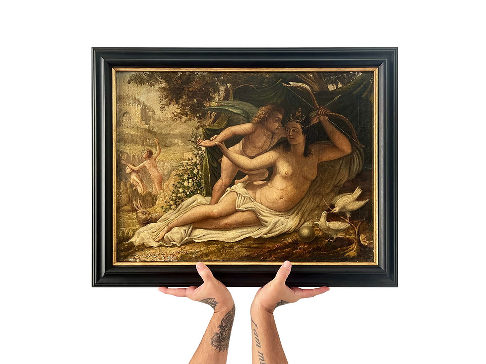 A Stunning Antique French Painting Of Cupid And Psyche, Oil, 1800's